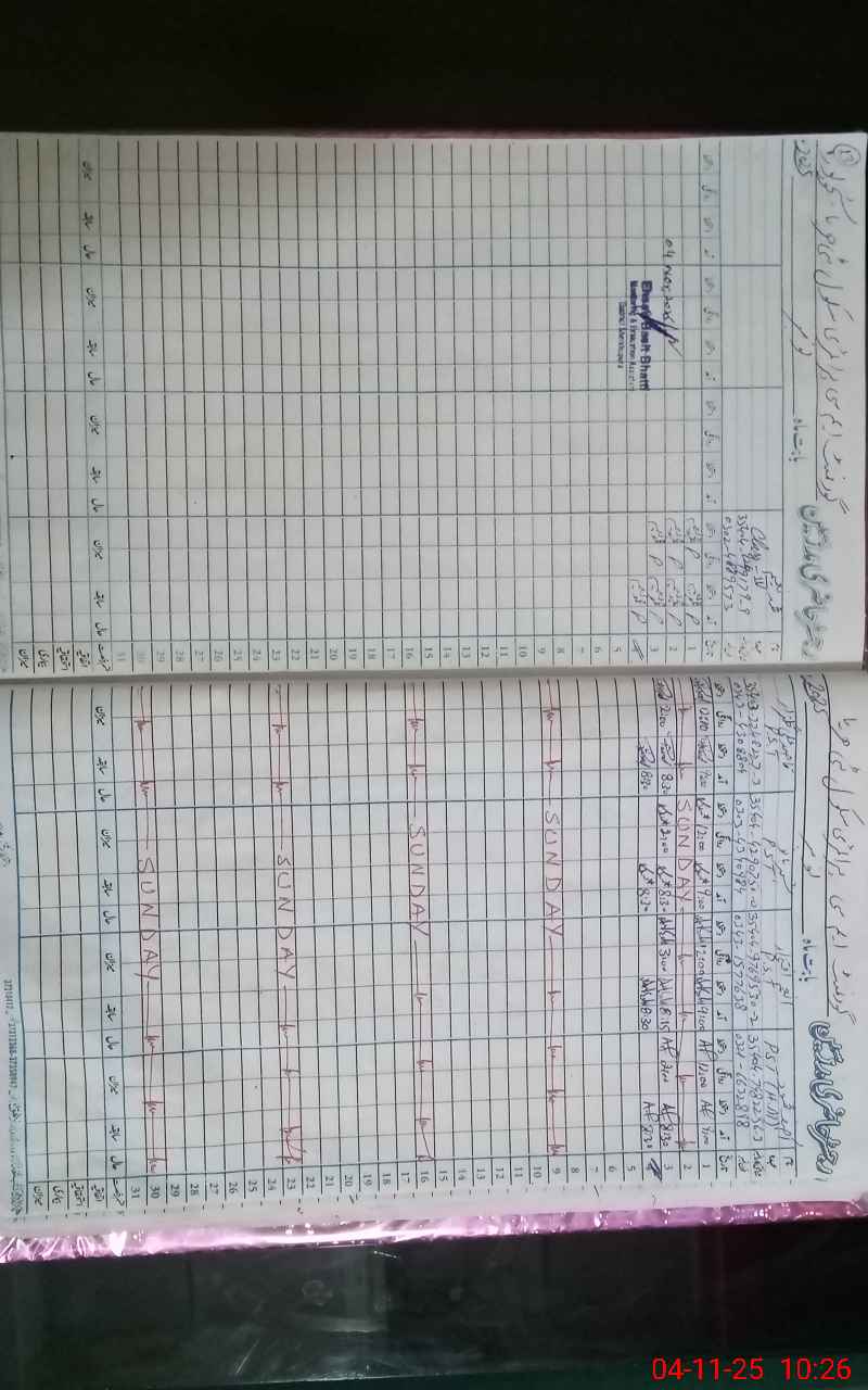| CNIC | Full Name | Designation | R/C | Absence During Last Calender Month |