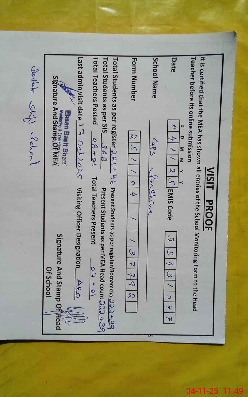 | EMIS Code: 35431077 | Name of School: GPS SUNSHINE | |||