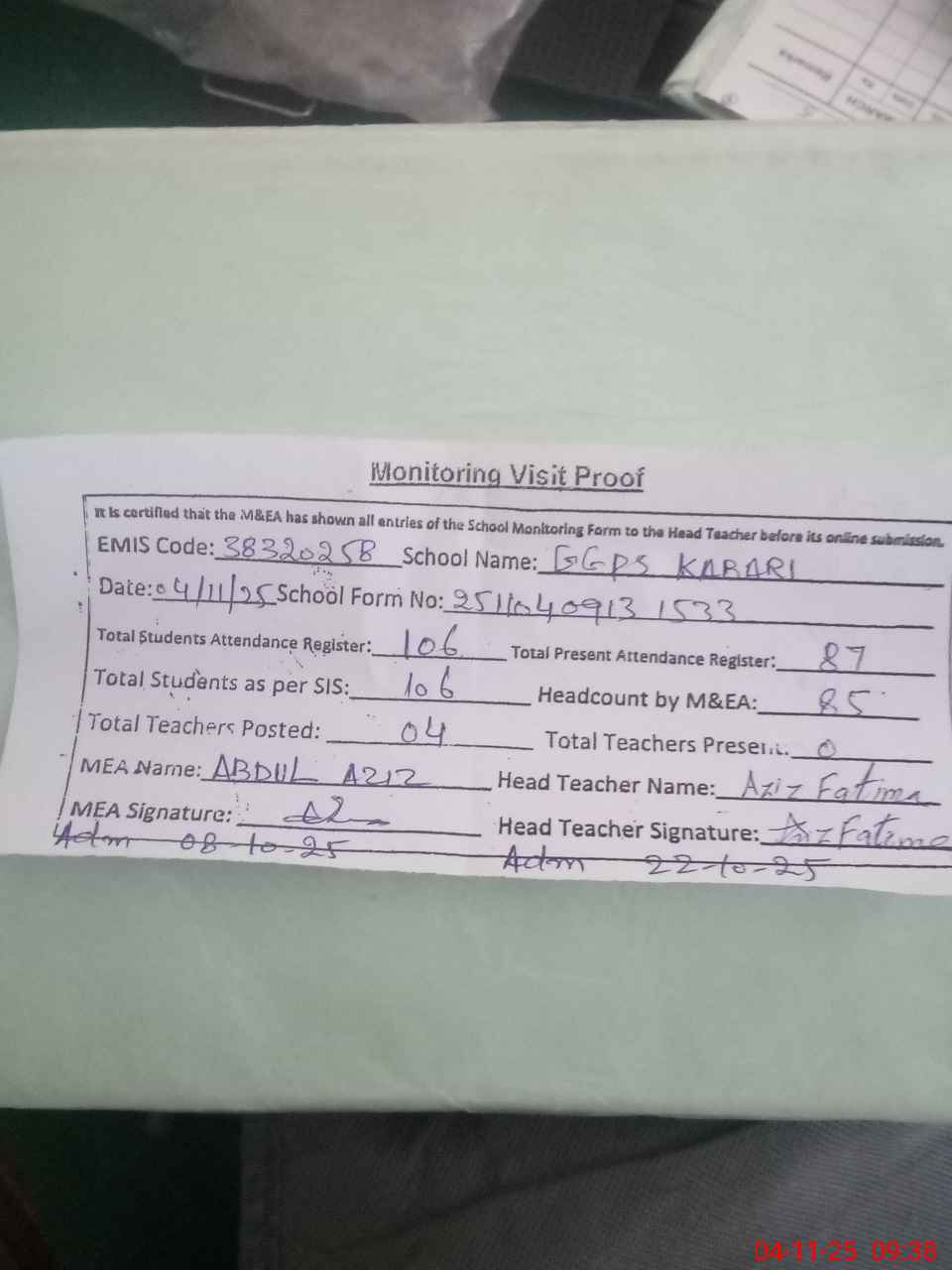 | EMIS Code: 38320258 | Name of School: GGPS KABARI | |||
