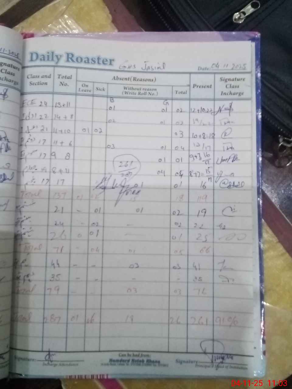 | Total Students Present | 22 | 0 | 19 | 18 | 13 | 16 | 15 | 16 | 19 | 22 | 25 | 41 | 35 | 261 | ||