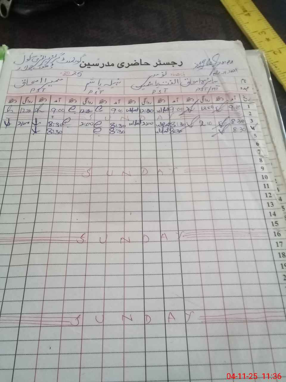 | CNIC | Full Name | Designation | R/C | Absence During Last Calender Month |