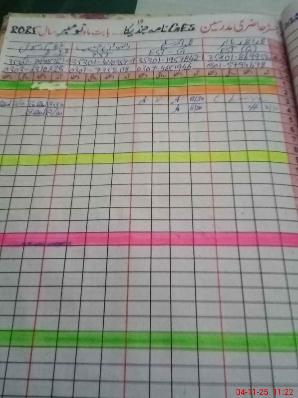 | CNIC | Full Name | Designation | R/C | Absence During Last Calender Month |