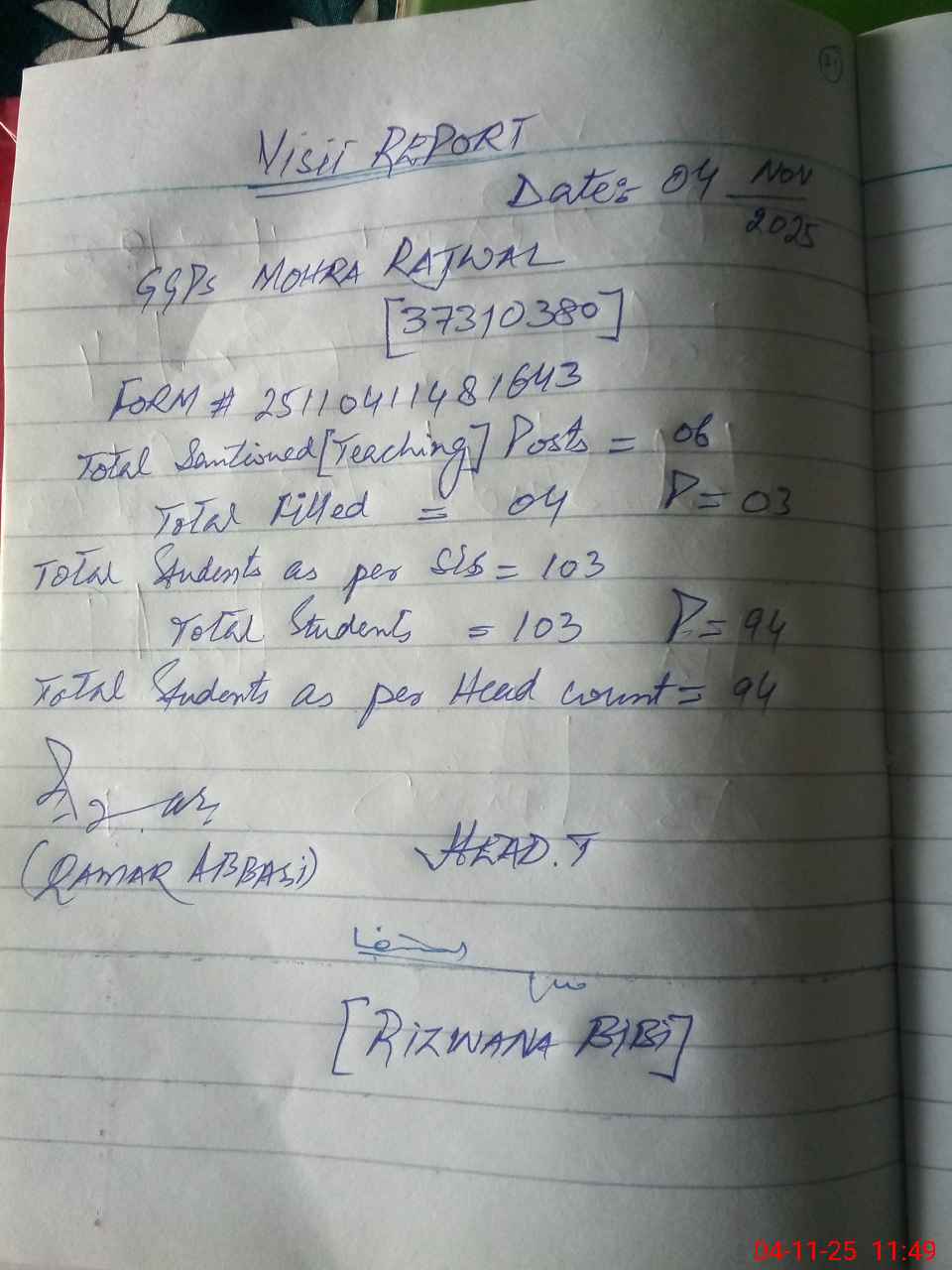 | EMIS Code: 37310380 | Name of School: GGPS MOHRA RAJWAL | |||