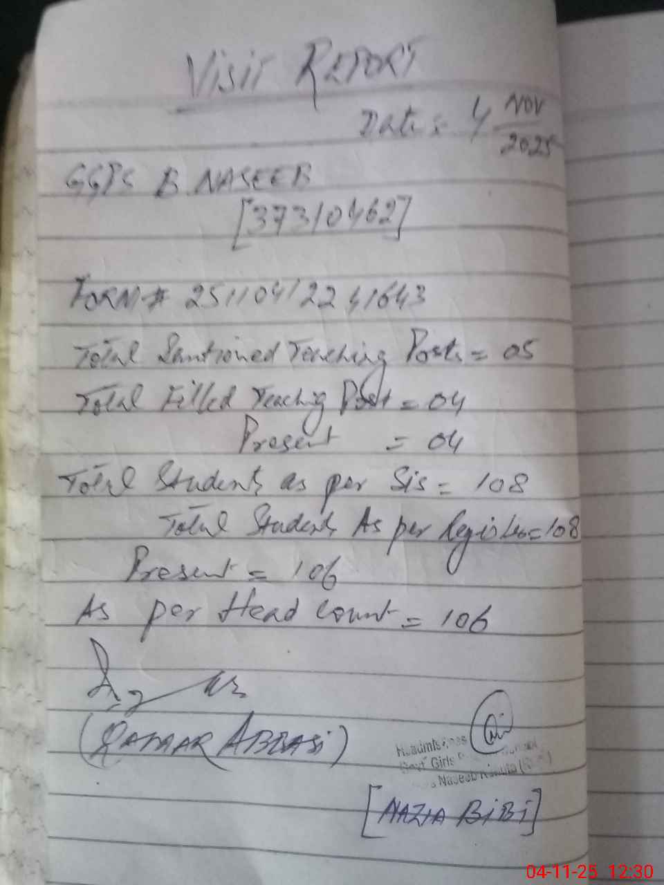 | EMIS Code: 37310462 | Name of School: GGPS BHORA NASEEB | |||