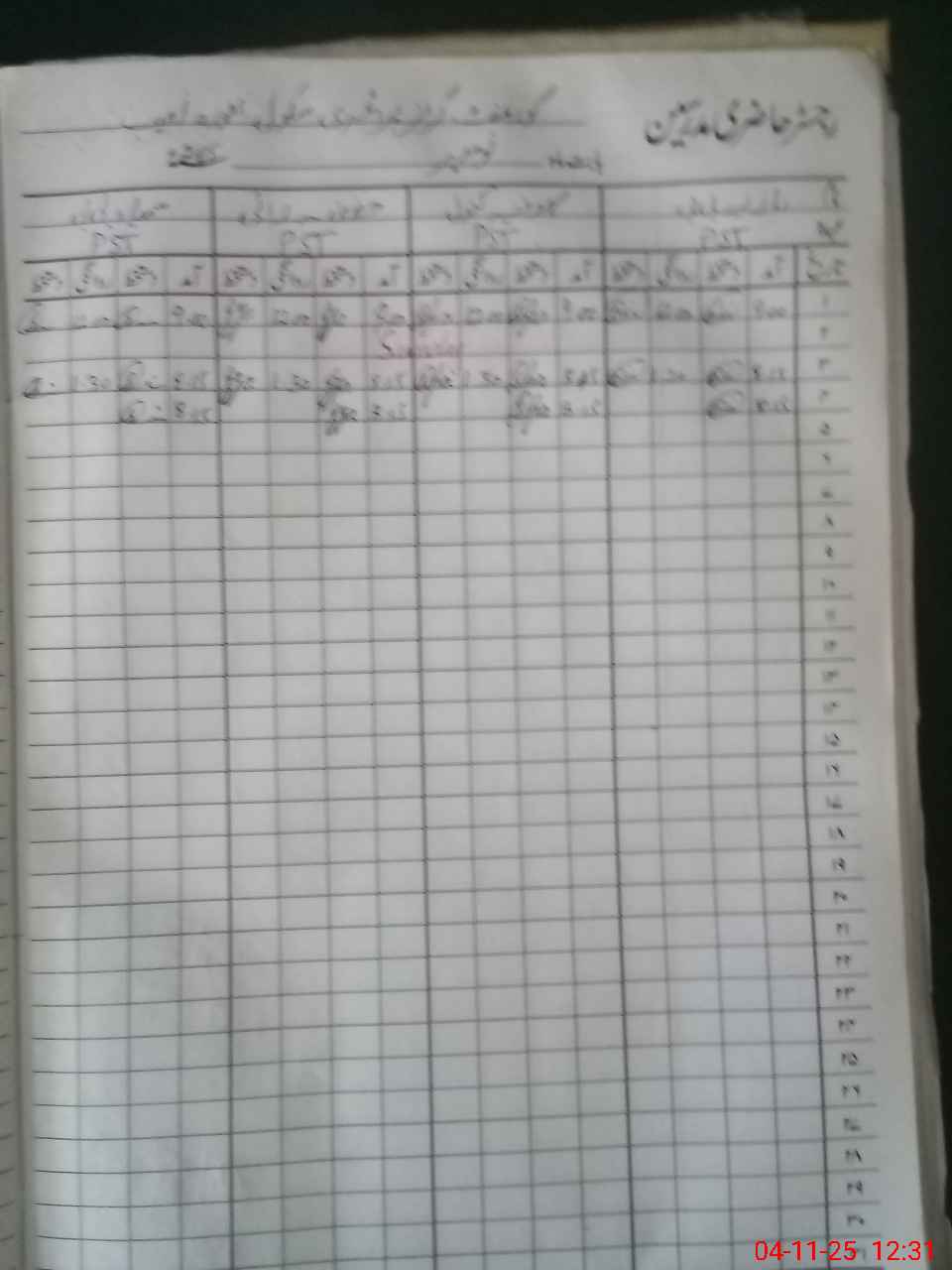 | CNIC | Full Name | Designation | R/C | Absence During Last Calender Month |