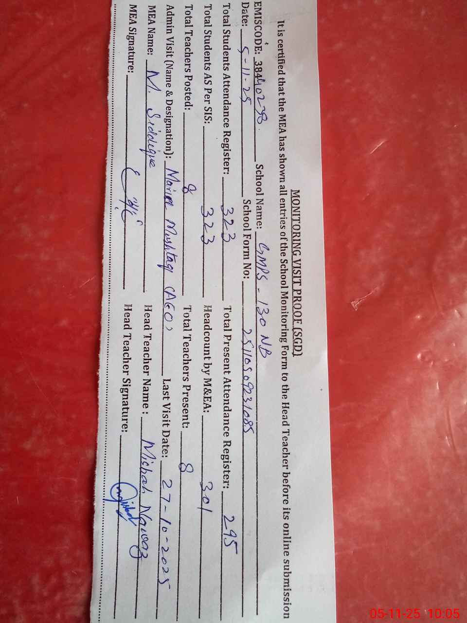 | EMIS Code: 38440238 | Name of School: GMPS NO.1 CHAK NO.130 NB | |||