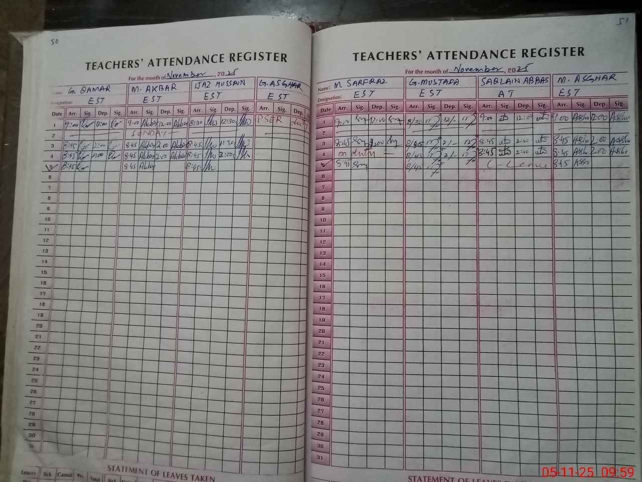 | CNIC | Full Name | Designation | R/C | Absence During Last Calender Month |