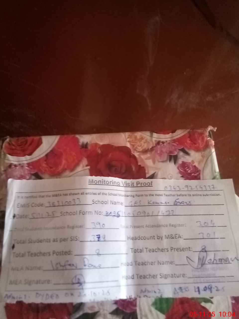 | EMIS Code: 38310033 | Name of School: GES KAMAR SAR | |||