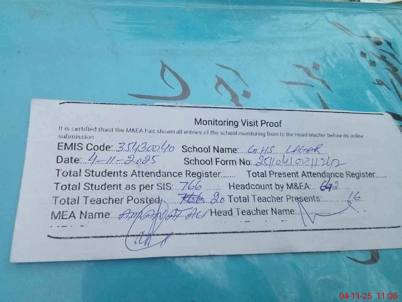 | EMIS Code: 35430040 | Name of School: GHS LAGAR | |||