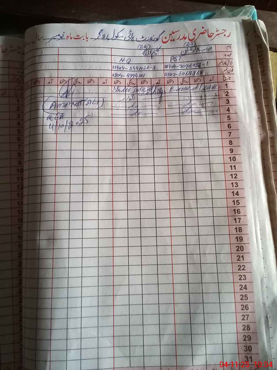 | 35**** | Ka**** | NIBE QASID | Regular | 0 | 0 | 30 | 0 | 0 | 0 | 0 | 0 | 0 | Absent (Un-Authorized) |