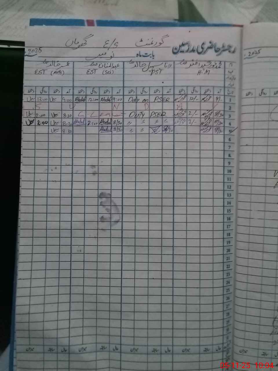 | CNIC | Full Name | Designation | R/C | Absence During Last Calender Month |