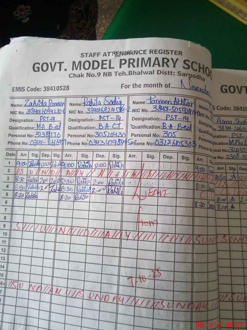| Name: Za**** Pe**** Designation: (School Headmaster's/Headmistress's) PST Phone/Cell Number: 03**** |