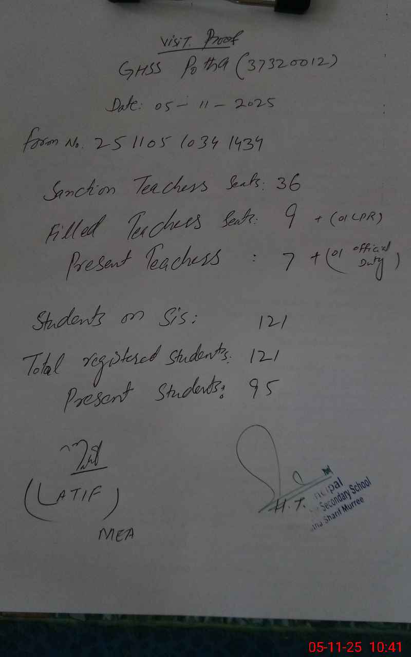| EMIS Code: 37320012 | Name of School: GHSS POTHA | |||