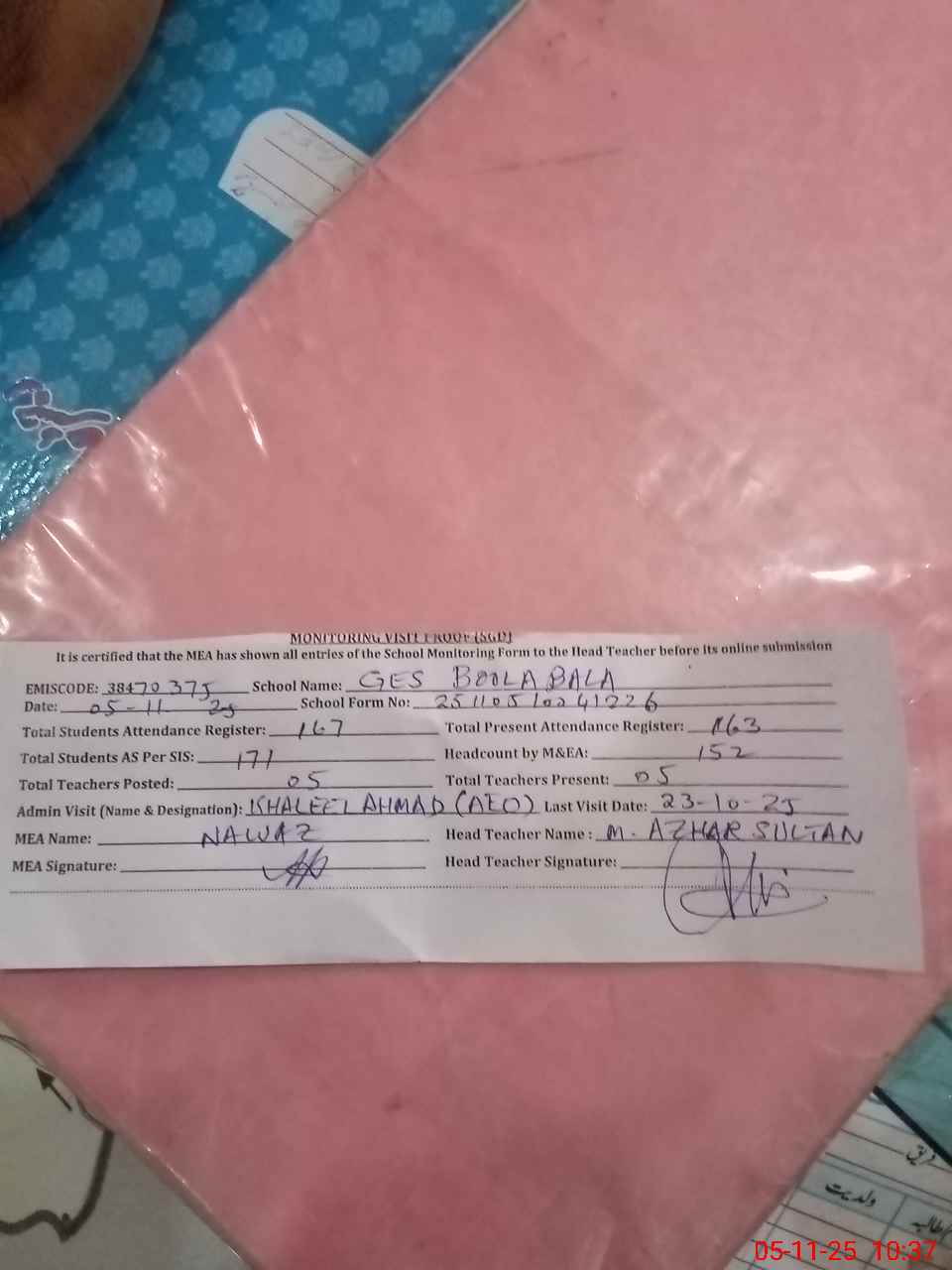 | Name: MU**** AZ**** SU**** Designation: (School Headmaster's/Headmistress's) SST Phone/Cell Number: 03**** |