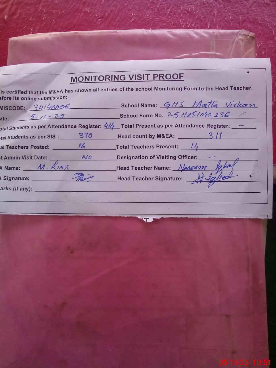 | EMIS Code: 34140006 | Name of School: GHS MATTA VIRKAN | |||