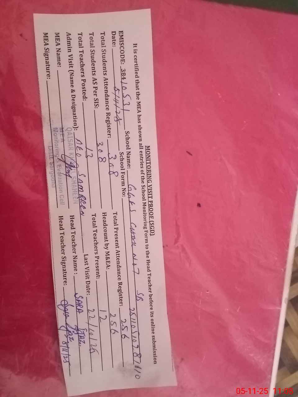 | EMIS Code: 38410531 | Name of School: GGES CHAK NO. 7 SB SYEDAN WALA | |||