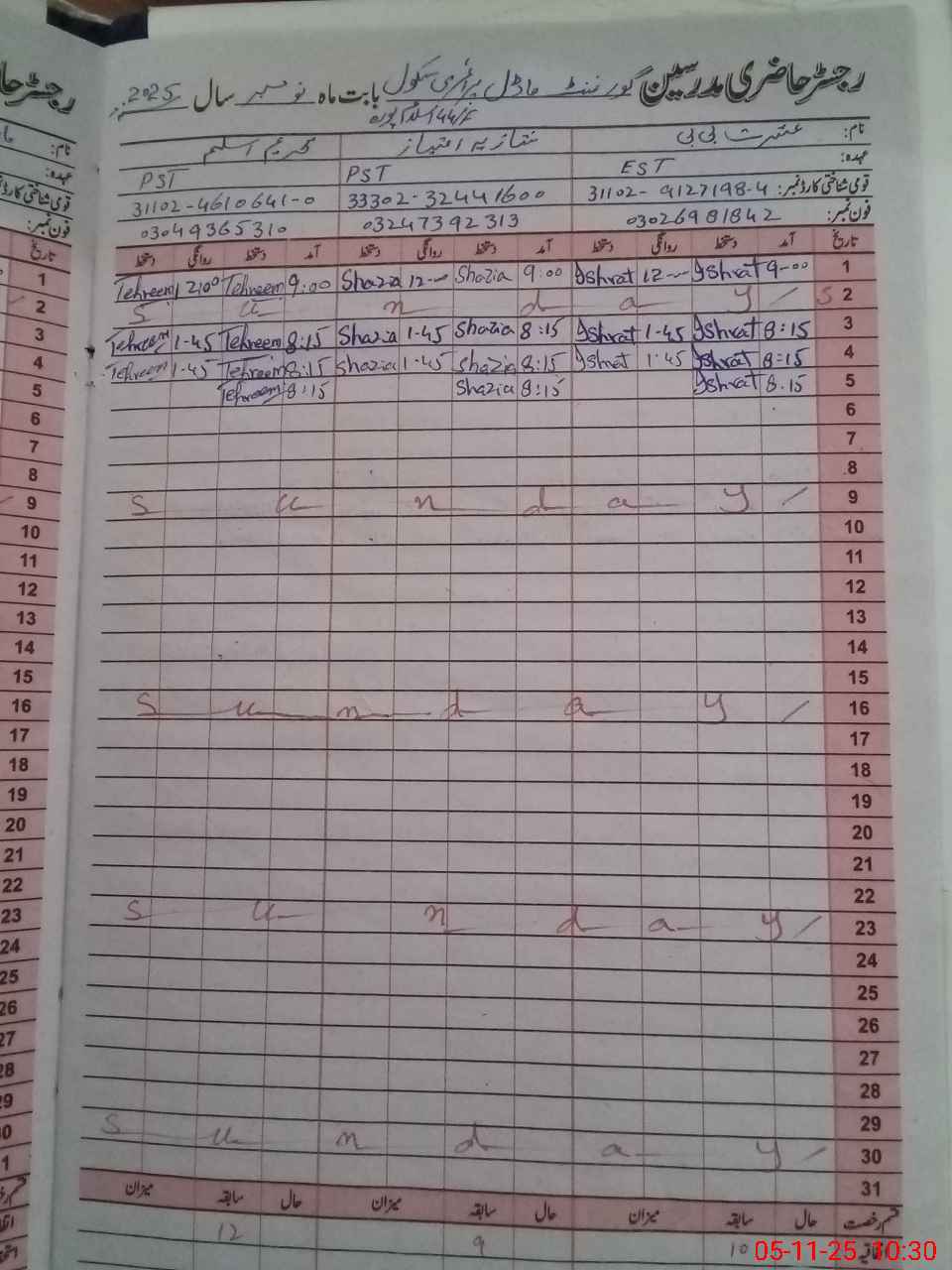 | Name: IS**** BB Designation: (School Headmaster's/Headmistress's) EST Phone/Cell Number: 03**** |
