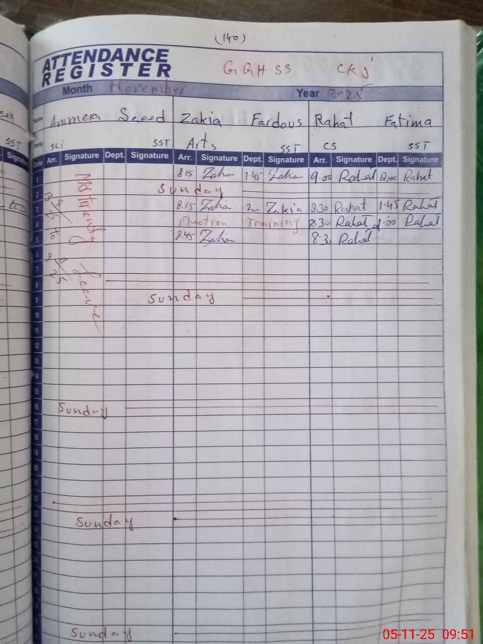 | Monitoring Date: 05-11-2025 | Start Time: 05-11-2025 09:16 AM | End Time: 05-11-2025 10:04 AM | Name of MEA: MU**** SH**** MU**** | |