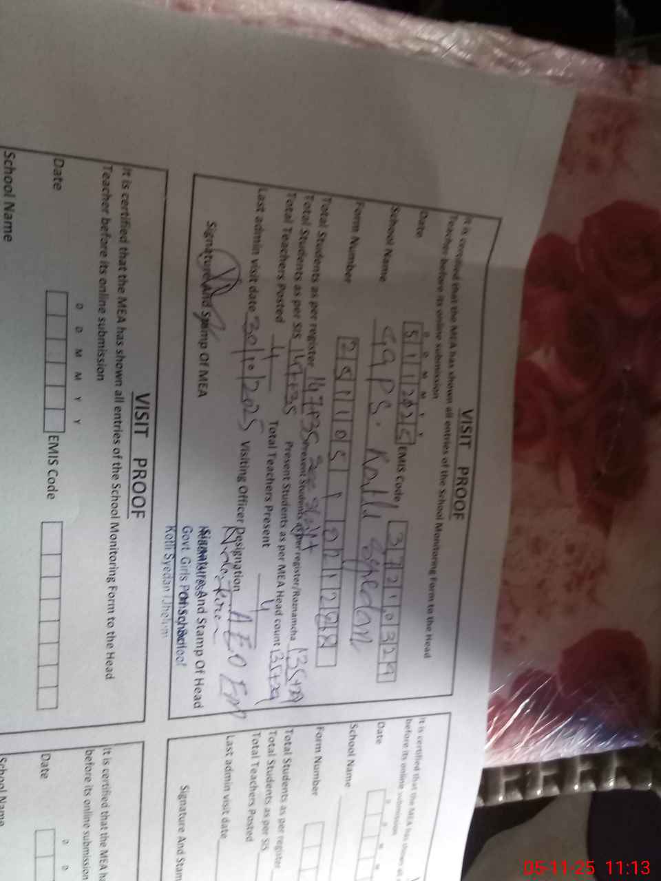 | Certified that this School was Inspected by the Undersigned MEA/DMO Today and the Information Stated Above is as Per Record. | |||||
