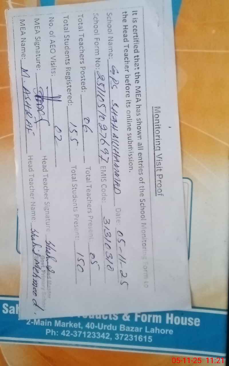 | EMIS Code: 31310310 | Name of School: GPS SHAH MUHAMMAD MARAL | |||