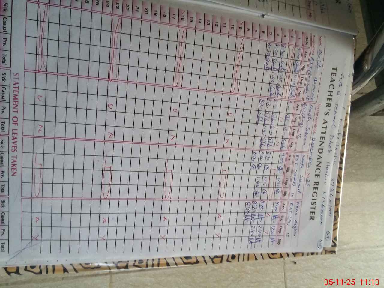 | Name: SH**** BE**** Designation: (School Headmaster's/Headmistress's) Headmistress Phone/Cell Number: 03**** |