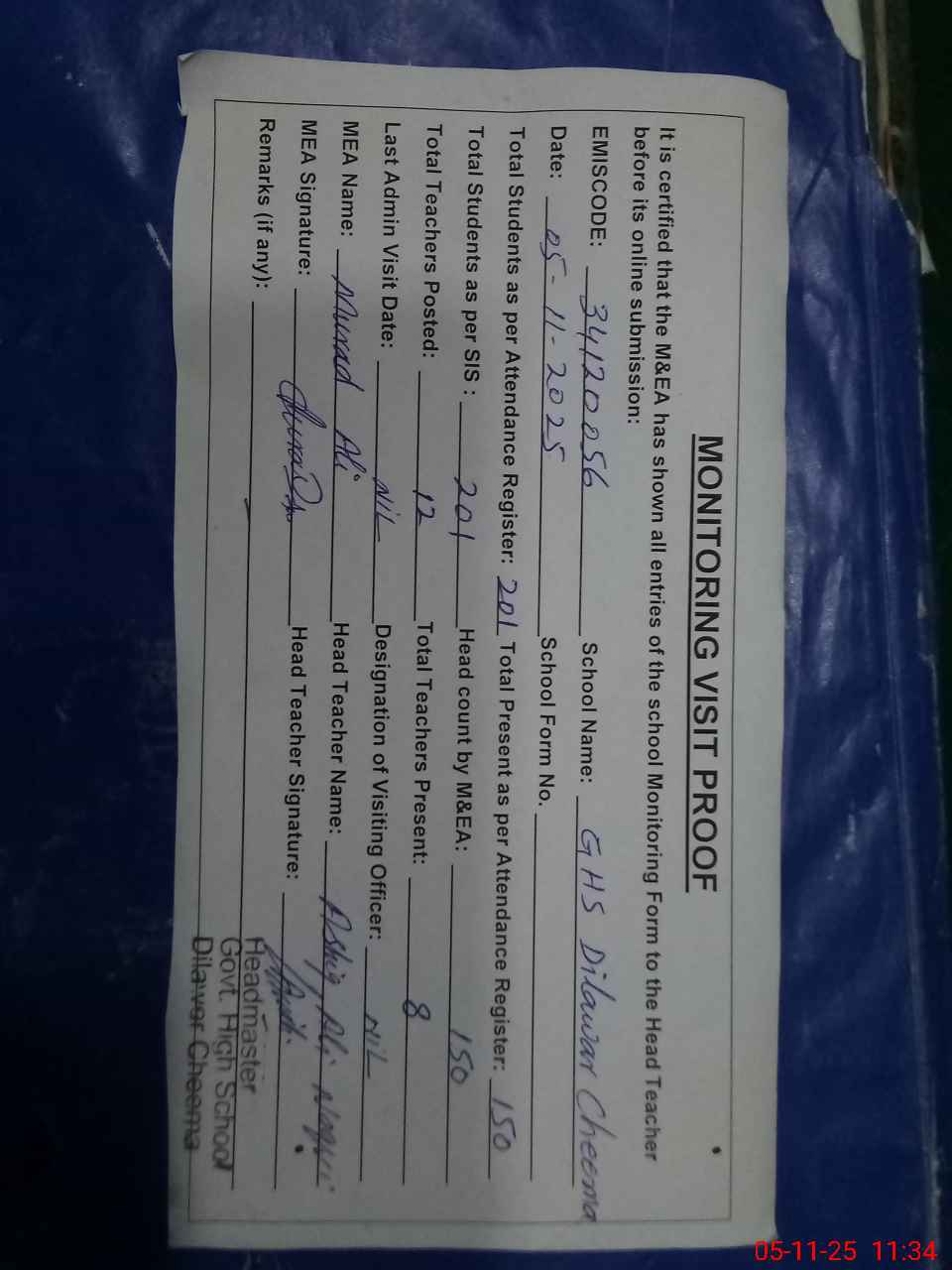 | EMIS Code: 34120056 | Name of School: GHS DILAWAR CHEEMA | |||