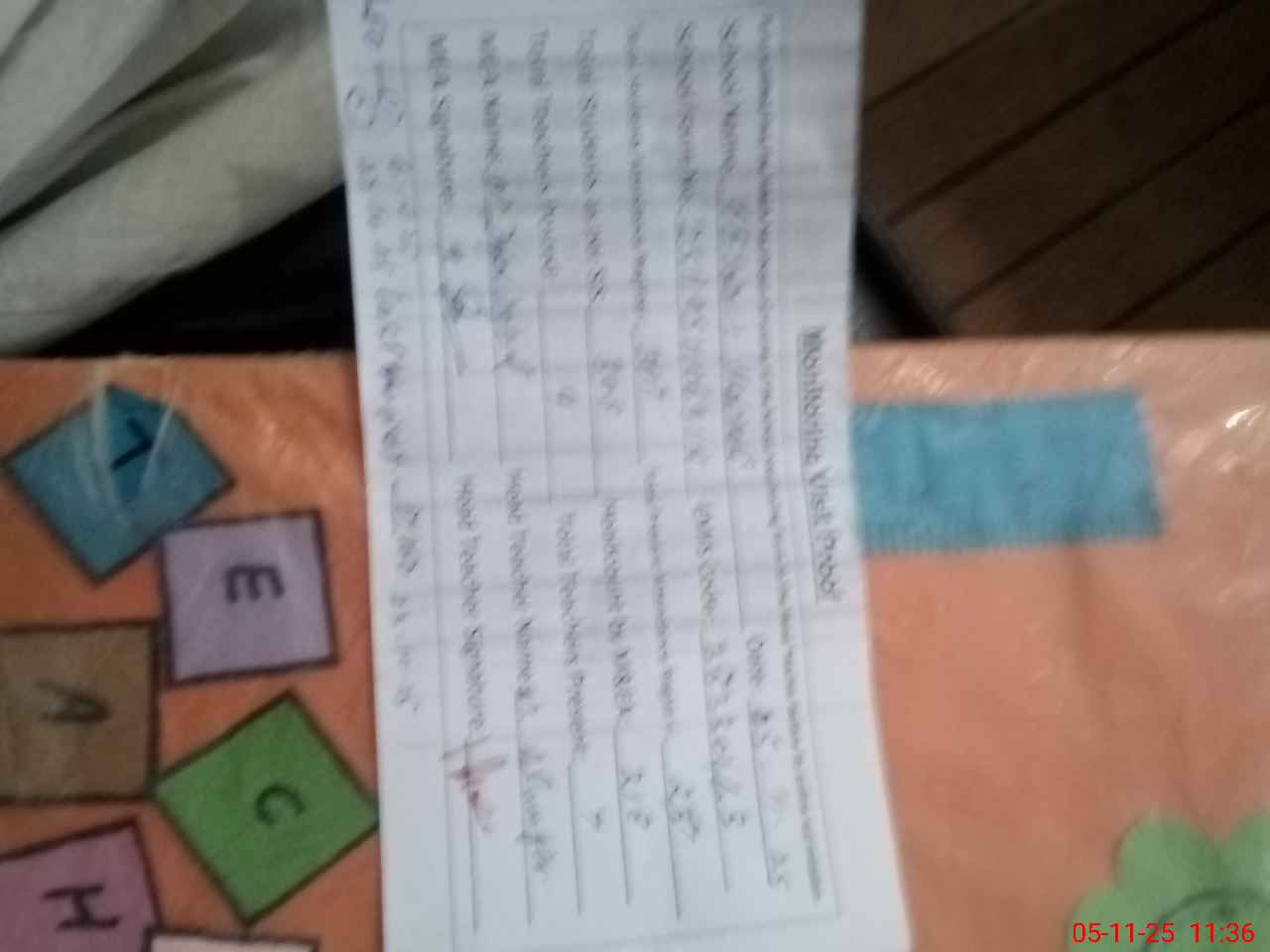 | Attendance Register | Head Teacher | MEA with School | Visit Proof |