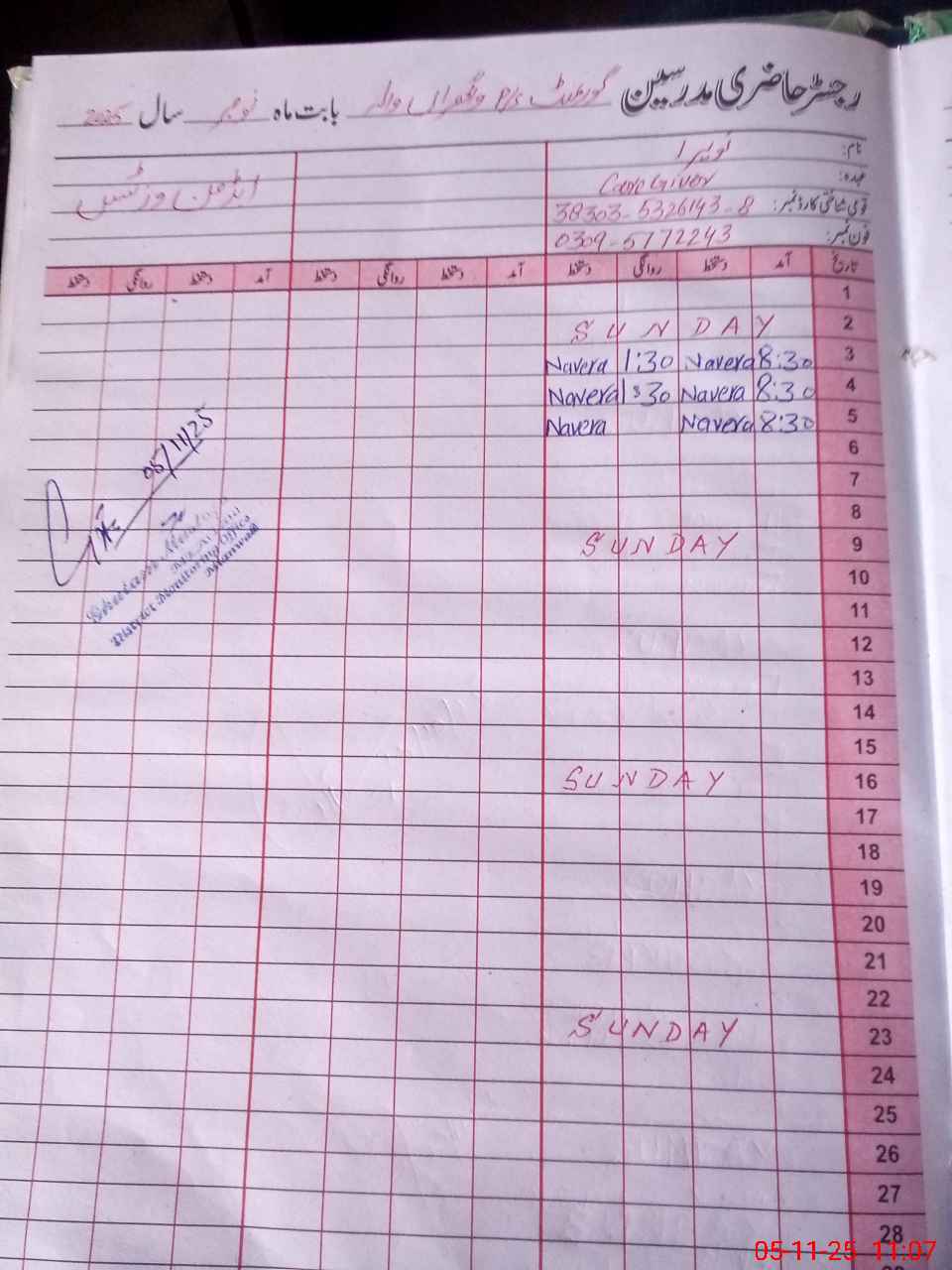 | CNIC | Full Name | Designation | R/C | Absence During Last Calender Month |