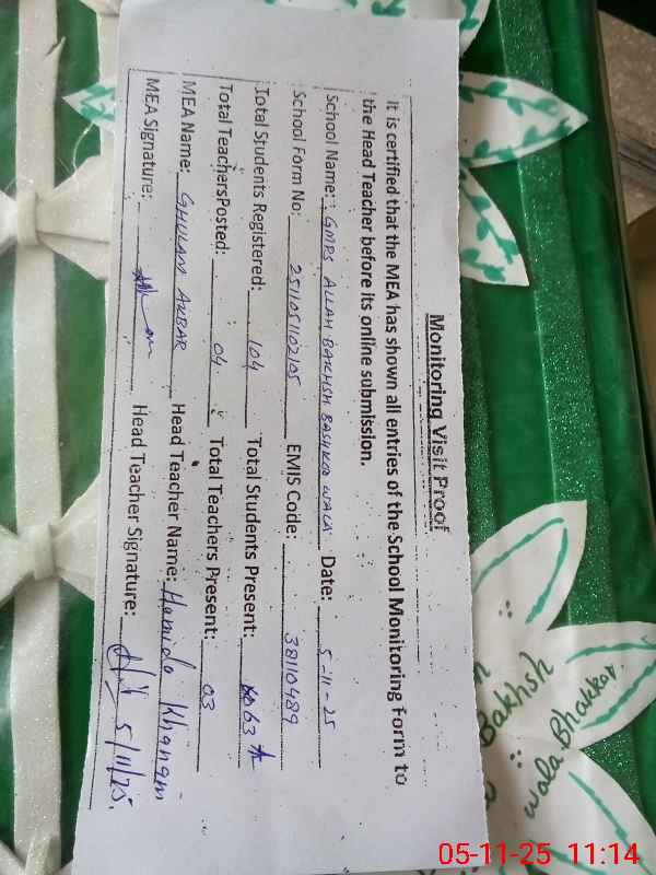 | EMIS Code: 38110489 | Name of School: GGPS CHAH ALLAH BAKHSH BASKHSHU WALA | |||
