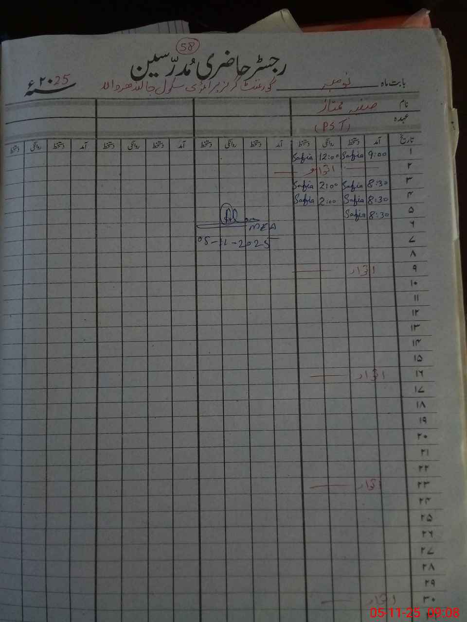 | Name: Zu**** Bi**** Designation: (School Headmaster's/Headmistress's) PST Phone/Cell Number: 03**** |