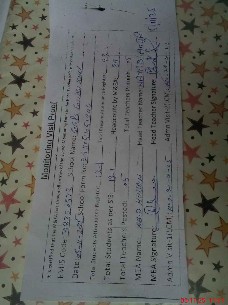 | EMIS Code: 38320573 | Name of School: GGPS GUDDI KHEL | |||
