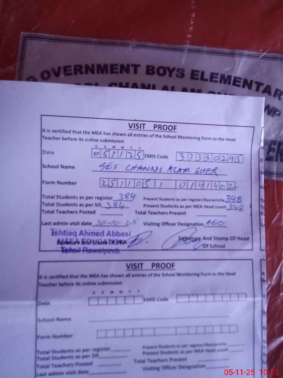| EMIS Code: 37330295 | Name of School: GES CHANI ALAM SHER | |||