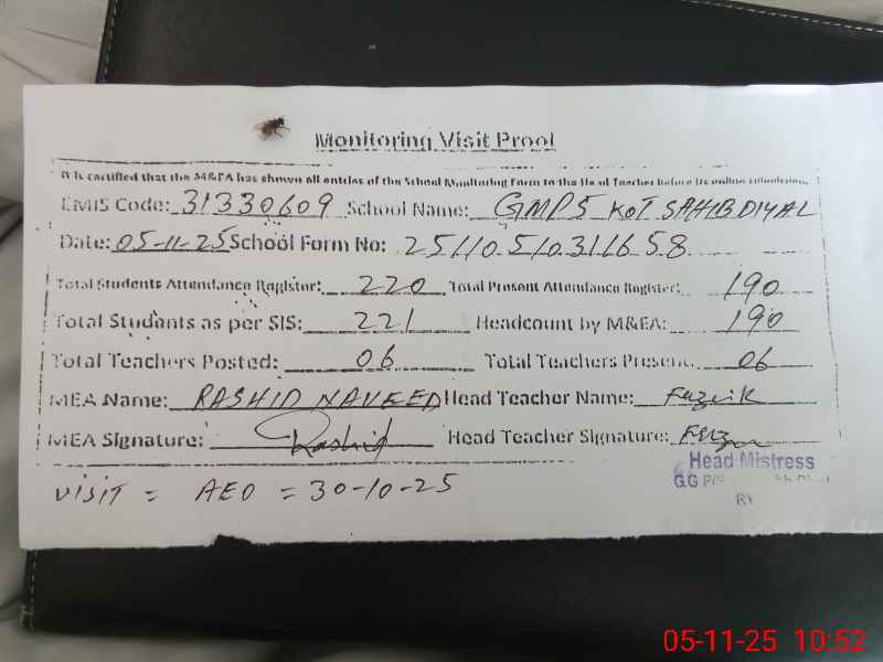 | EMIS Code: 31330609 | Name of School: GMPS KOT SAHIB DIYAL | |||