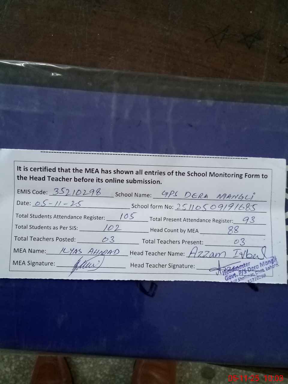 | EMIS Code: 35210298 | Name of School: GPS DERA MANGLI | |||