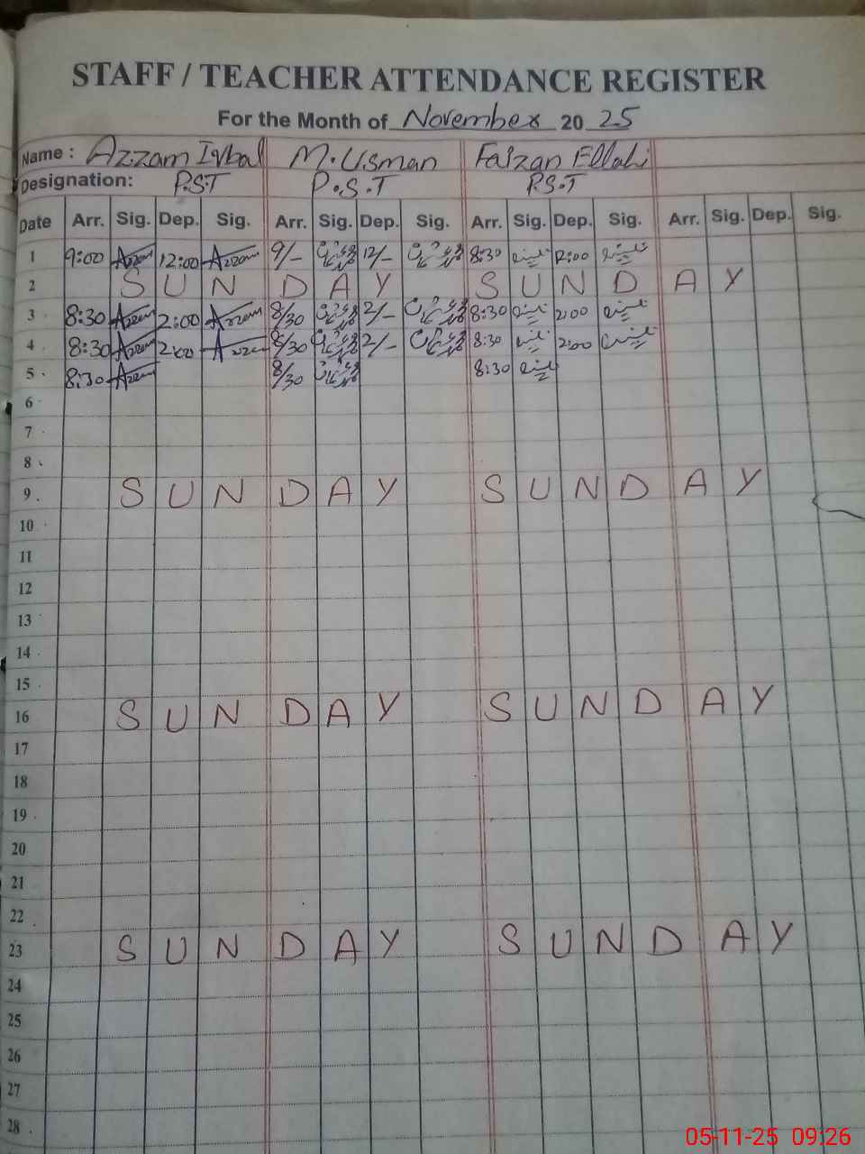 | Name: Az**** Iq**** Designation: (School Headmaster's/Headmistress's) Head Master Phone/Cell Number: 03**** |