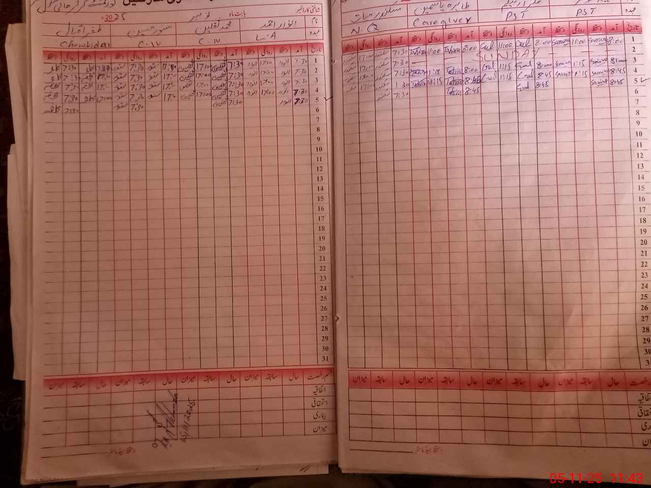 | CNIC | Full Name | Designation | R/C | Absence During Last Calender Month |