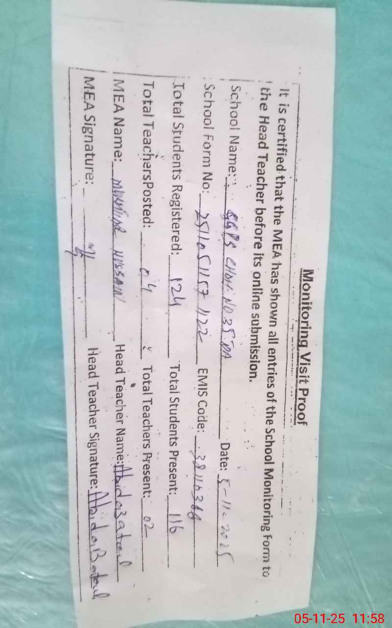 | EMIS Code: 38110366 | Name of School: GGPS CHAK NO.35/TDA CHAH PHULKI | |||