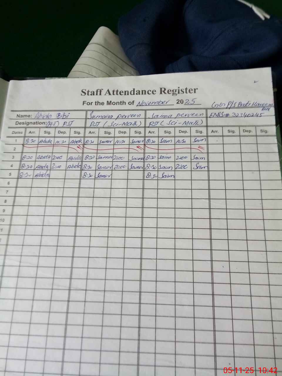 | Name: AB**** BI**** Designation: (School Headmaster's/Headmistress's) PST Phone/Cell Number: 03**** |