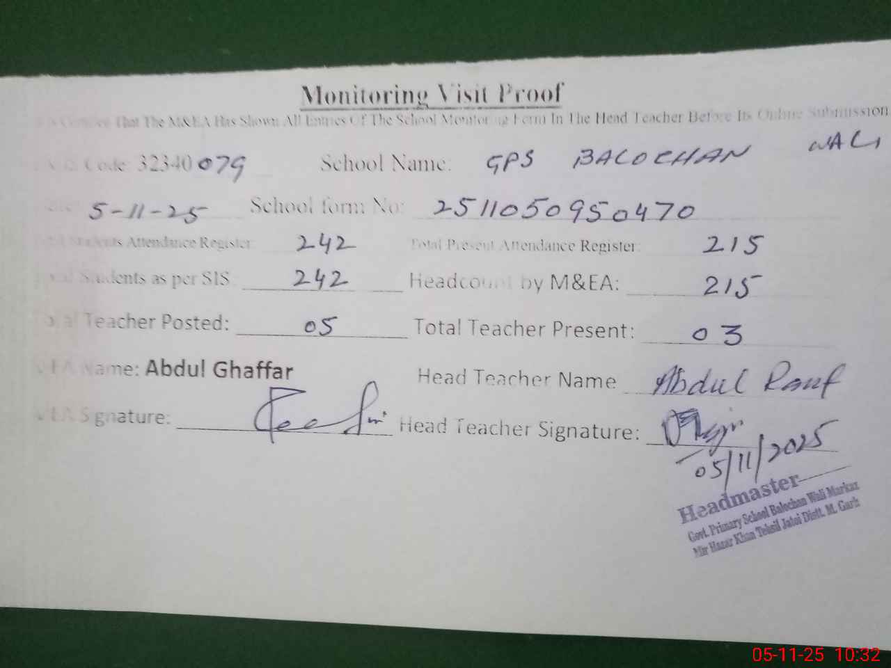 | EMIS Code: 32340079 | Name of School: GPS BALOCHAN WALI | |||