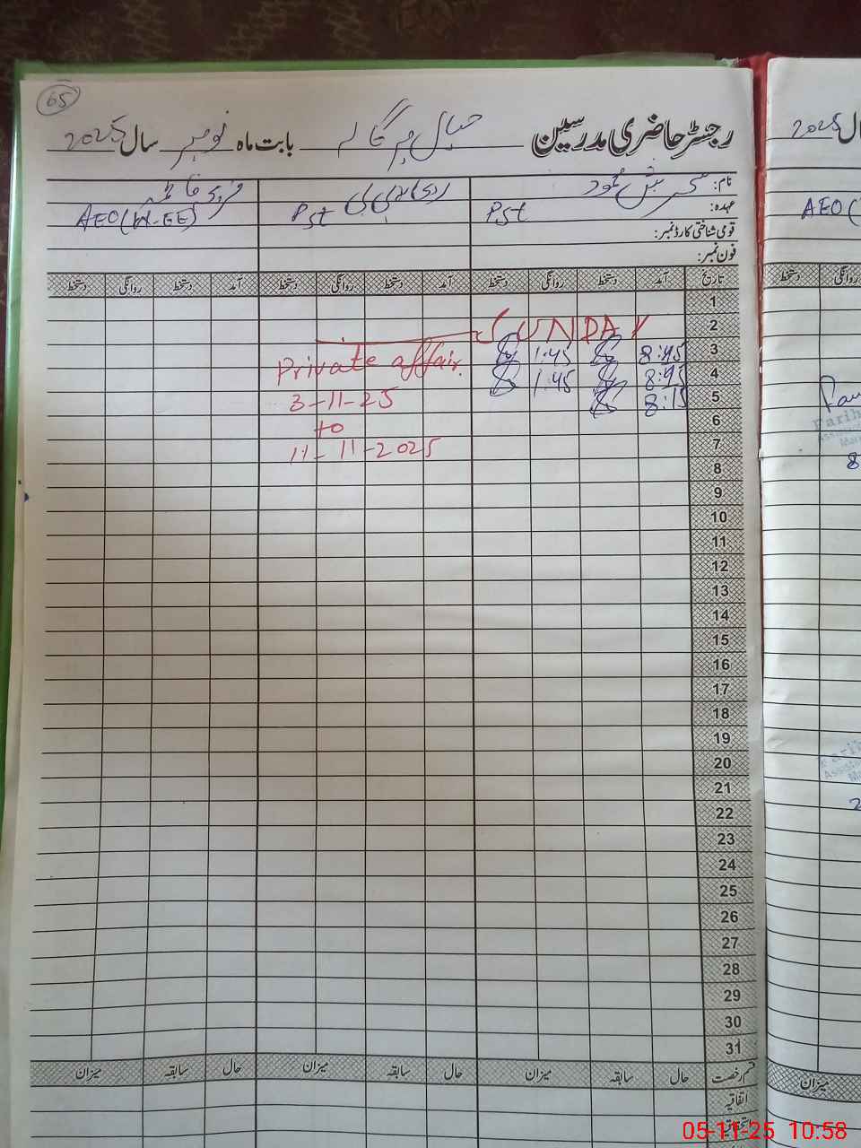 | CNIC | Full Name | Designation | R/C | Absence During Last Calender Month |