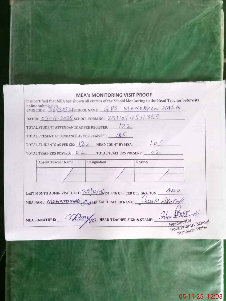 | EMIS Code: 36430521 | Name of School: GPS MANOKAAN WALA | |||