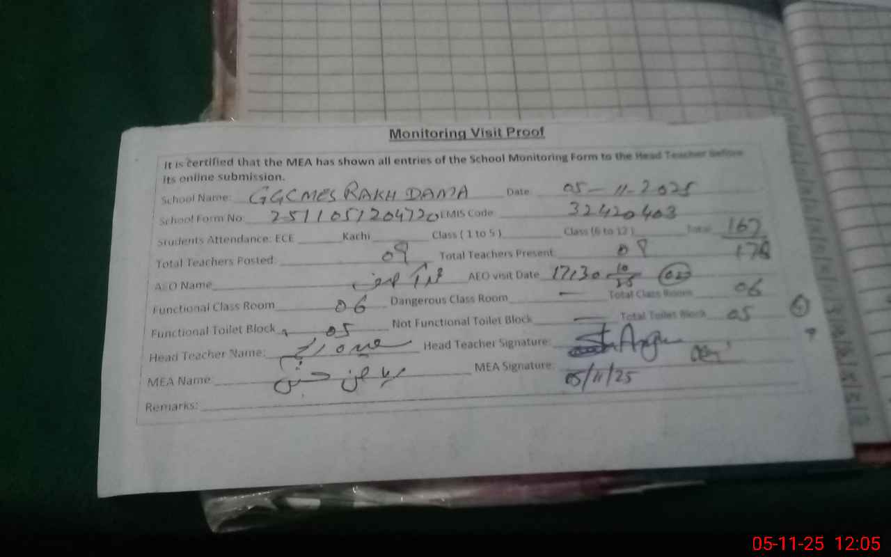 | EMIS Code: 32420403 | Name of School: GGCMES RAKH DAMA | |||