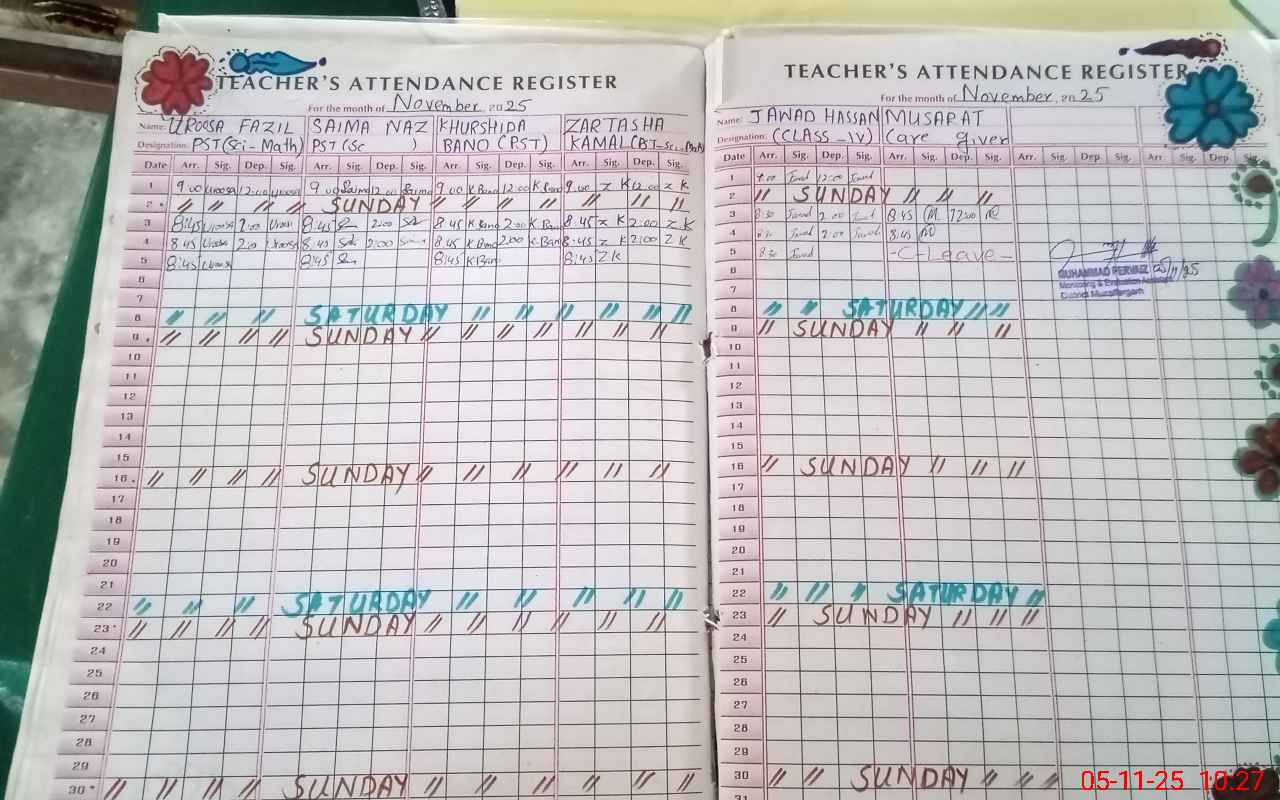 | Attendance Register | Head Teacher | MEA with School | Visit Proof |