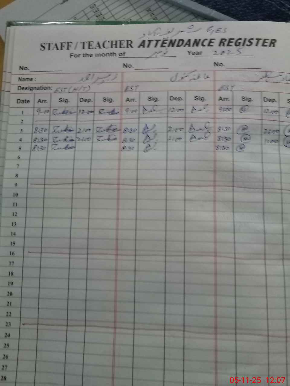 | Name: Zu**** Ah**** Designation: (School Headmaster's/Headmistress's) EST (G) Phone/Cell Number: 03**** |