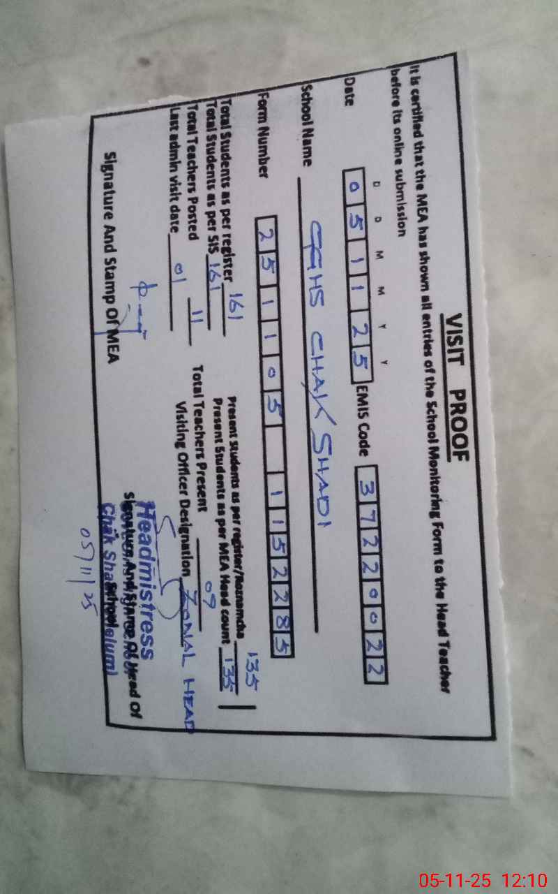 | EMIS Code: 37220022 | Name of School: GGHS CHAK SHADI | |||