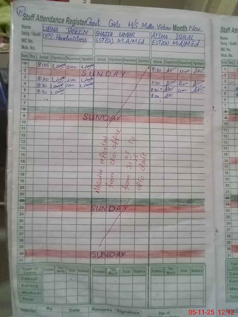| 34**** | Sh**** Um**** | Regular | 0 | 0 | 0 | 0 | 0 | 0 | 0 | 0 | 0 | Absent (Un-Authorized) | |