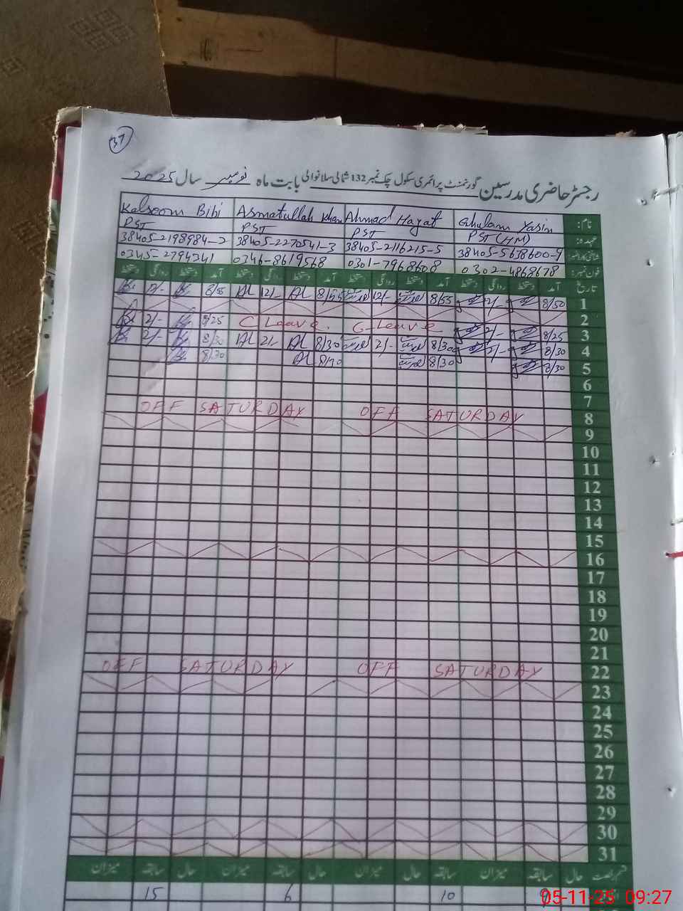 | Name: Gh**** Ya**** Designation: (School Headmaster's/Headmistress's) PTC/JV Phone/Cell Number: 03**** |