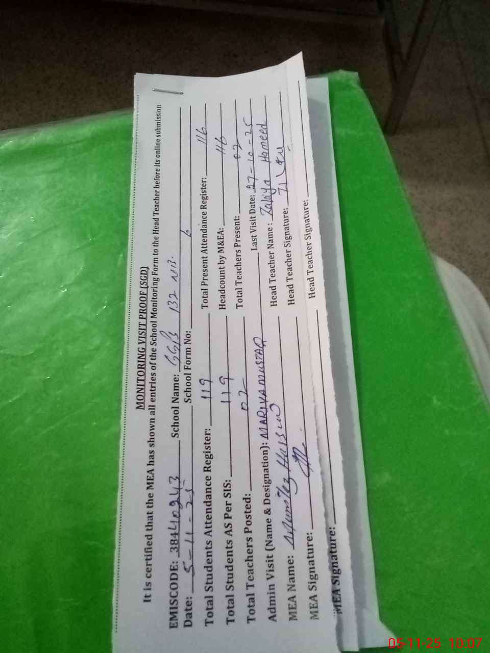 | Certified that this School was Inspected by the Undersigned MEA/DMO Today and the Information Stated Above is as Per Record. | |||||