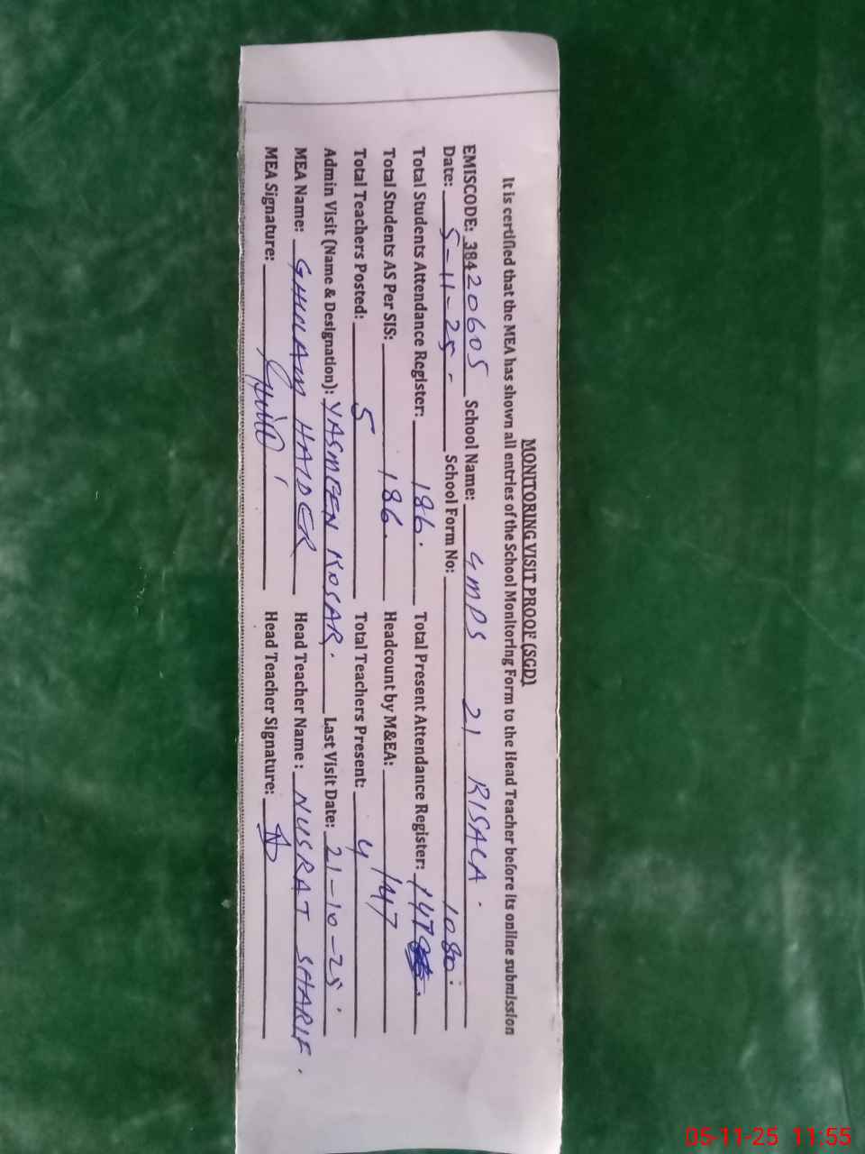 | EMIS Code: 38420605 | Name of School: GMPS CHAK NO.21 RISALA | |||