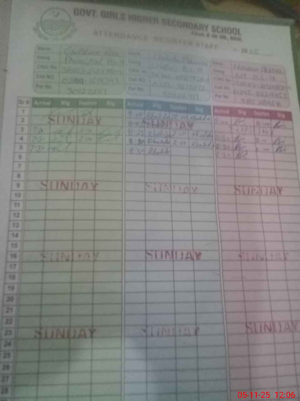 | CNIC | Full Name | Designation | R/C | Absence During Last Calender Month |